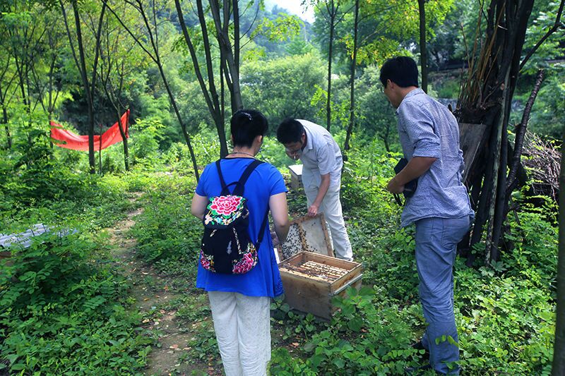 山莊很有特色,一排排整齊的蜂箱就在眼前,公司總經(jīng)理宋總代領(lǐng)網(wǎng)友觀看了真實的蜂箱。蜂王一般能活5-10年,比普通工蜂活的時間長,主要吃蜂王漿。一只工蜂的壽命只有30-40天。一斤蜂蜜要消耗掉450多只蜜蜂的生命。