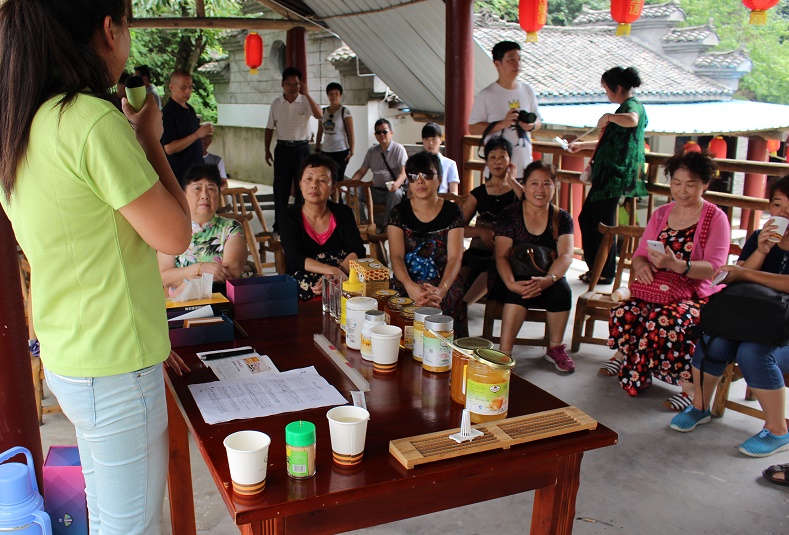 之后,神農(nóng)蜂語(yǔ)工作人員給大家講解了如何分辨蜂蜜、蜂王漿、蜂膠等品質(zhì)好壞問(wèn)題,以及這些蜂品都是怎么來(lái)的,武漢的游客紛紛舉手回答互動(dòng),現(xiàn)場(chǎng)氣氛十分活躍。