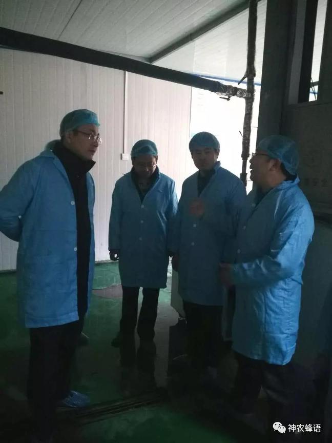 王榮雷一行先來到了位于茅箭區(qū)大川鎮(zhèn)的神農(nóng)蜂語蜂產(chǎn)品加工廠,詳細(xì)了解了公司生產(chǎn)的蜂產(chǎn)品的品種、流程、質(zhì)量管控和銷售等方面的情況。隨后,又來到位于公司設(shè)置在茅箭區(qū)茅塔鄉(xiāng)康家村的精準(zhǔn)扶貧中華蜜蜂育種基地。該基地是神農(nóng)蜂語公司為滿足中華蜜蜂養(yǎng)殖精準(zhǔn)扶貧工作需要而興建的蜂種繁育基地。王榮雷饒有興致地查看了爬滿蜜蜂的蜂脾,對神農(nóng)蜂語采取“企業(yè)+合作社+農(nóng)戶”的精準(zhǔn)扶貧方式表示高度認(rèn)可,并表示將支持神農(nóng)蜂語蜂產(chǎn)品進(jìn)駐供銷電商平臺。