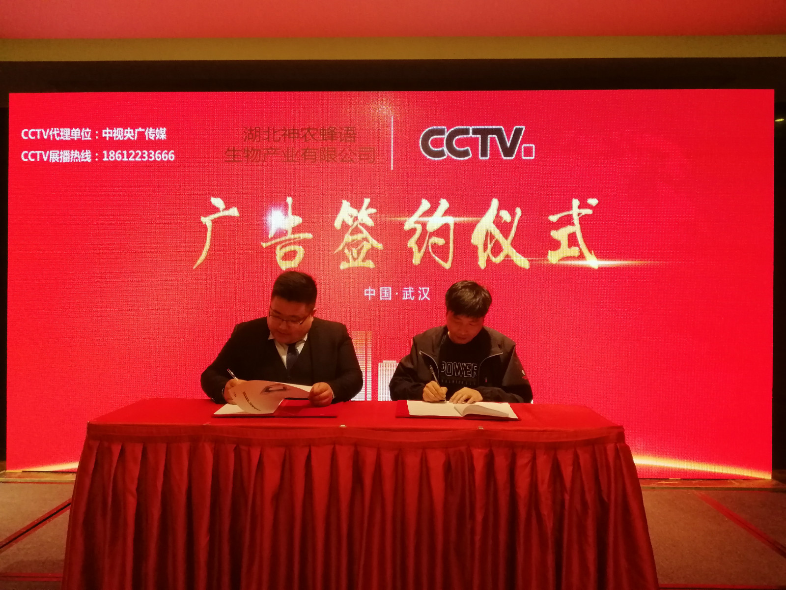 4月12日,公司總經(jīng)理宋學(xué)喜代表神農(nóng)蜂語與中視央廣(武漢)傳媒有限公司在武漢歐亞國際會展酒店簽約在央視上投放廣告。