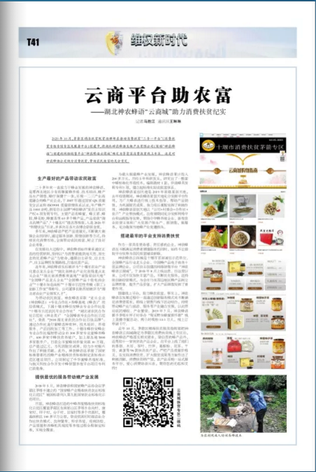 2020年10月,茅箭區(qū)精準(zhǔn)扶貧脫貧指揮部在推動(dòng)消費(fèi)扶貧“三專一平臺(tái)”(消費(fèi)扶貧專柜專館專區(qū)及服務(wù)平臺(tái))創(chuàng)建中,將湖北神農(nóng)蜂語生物產(chǎn)業(yè)有限公司(簡稱“神農(nóng)蜂語”)創(chuàng)建的網(wǎng)絡(luò)銷售平臺(tái)“神農(nóng)蜂語云商城”確定為茅箭區(qū)消費(fèi)扶貧線上專區(qū)。這是對神農(nóng)蜂語公司助力消費(fèi)扶貧,帶動(dòng)農(nóng)民致富的充分肯定。