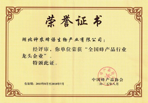 近年來,神農(nóng)蜂語先后被評為“十堰市農(nóng)業(yè)產(chǎn)業(yè)化重點(diǎn)龍頭企業(yè)”、“湖北省林業(yè)產(chǎn)業(yè)化省級重點(diǎn)龍頭企業(yè)”、“湖北省消費(fèi)教育基地”、“省級星創(chuàng)天地”、“全國蜂產(chǎn)品龍頭企業(yè)”、“全國蜂產(chǎn)品十佳電商企業(yè)”、“十堰市知名商標(biāo)”、“十堰市示范性勞模(職工)創(chuàng)新工作室”等稱號(hào)。公司董事長陳西喆被評為“湖北省農(nóng)業(yè)產(chǎn)業(yè)領(lǐng)軍人才”。