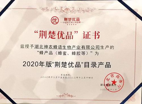 經(jīng)企業(yè)申報、地方推選、專家組評審、廳長辦公會審議和網(wǎng)上公示等程序,2020年“荊楚優(yōu)品”目錄于去年12月由湖北省商務廳確定,全省共列入100家企業(yè)產(chǎn)品,湖北神農(nóng)蜂語生物產(chǎn)業(yè)有限公司出品的蜂產(chǎn)品(蜂蜜、蜂膠等)進入該目錄。