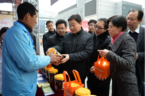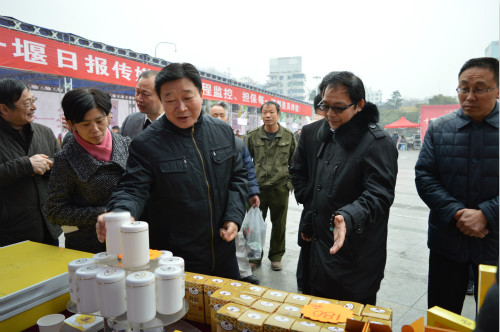 中共湖北省委常委、原十堰市委書記周霽(中)助銷神農(nóng)蜂語產(chǎn)品