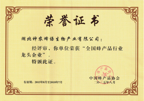 神農(nóng)蜂語榮獲“全國蜂產(chǎn)品行業(yè)龍頭企業(yè)”稱號