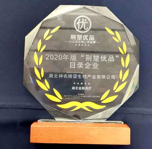 經(jīng)企業(yè)申報、地方推選、專家組評審、廳長辦公會審議和網(wǎng)上公示等程序,2020年“荊楚優(yōu)品”目錄于去年12月由湖北省商務廳確定,全省共列入100家企業(yè)產(chǎn)品,湖北神農(nóng)蜂語生物產(chǎn)業(yè)有限公司出品的蜂產(chǎn)品(蜂蜜、蜂膠等)進入該目錄。